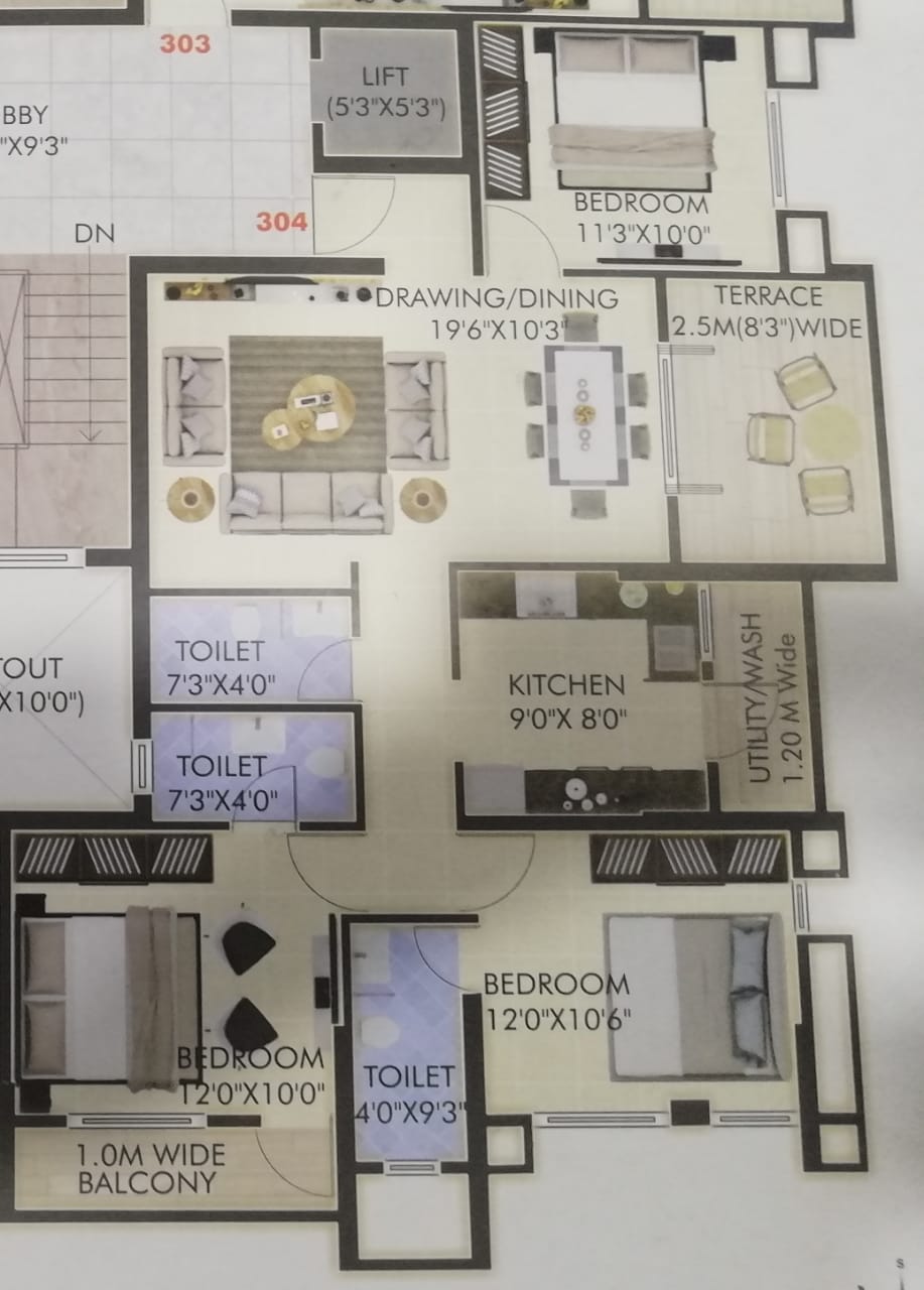 3 BHK Flat with Terrace in Prime Location. Possession by October 2021.